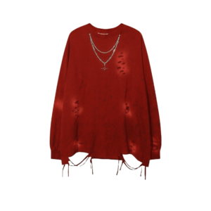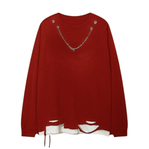 Streetwear Solid Color Distressed Necklace Sweatshirt Unisex Loose Fit Hip-Hop Couple Tee