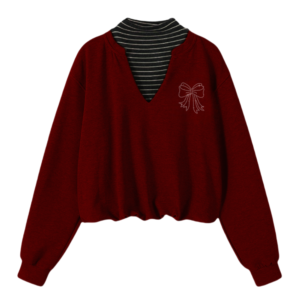 Elegant Off-Shoulder Sweatshirt With Bow Tie And Embroidery For Women