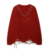 High Street Graffiti Distressed Layered Look Long Sleeve Sweatshirt Loose Fit Couple Casual Top